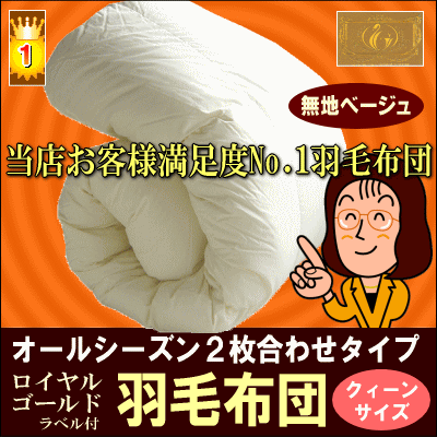【到着後レビューで送料無料】お客様満足度No.1羽毛布団オールシーズンタイプ2枚合せクイーンサイズ(羽毛布団/うもうふとん/ウモウフトン/羽毛ふとん)【あす楽対応】【ロイヤルゴールドラベル】 [▼uf]【楽ギフ_のし】[uff]【週末限定s1103】 |